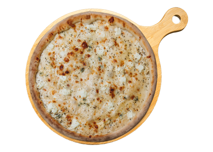 Crème fraîche, mozzarella, gorgonzola, chèvre, parmesan.